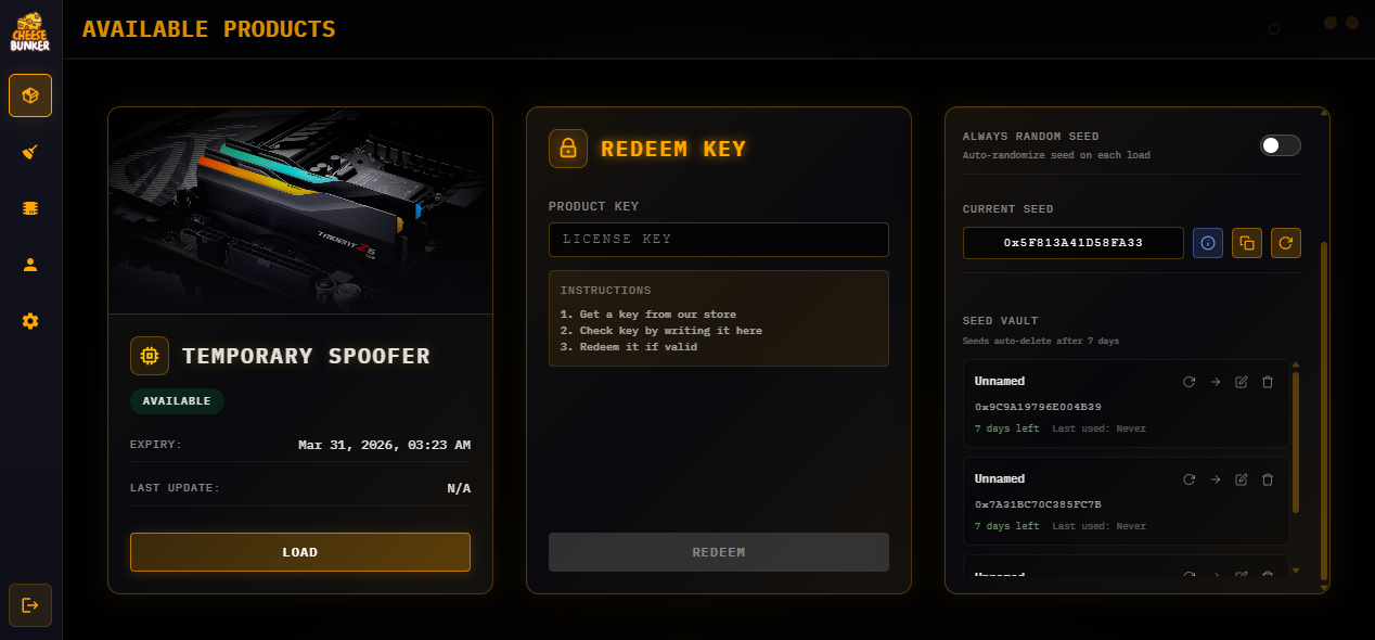 - Go to products page and press "Load" to start your Spoofer
